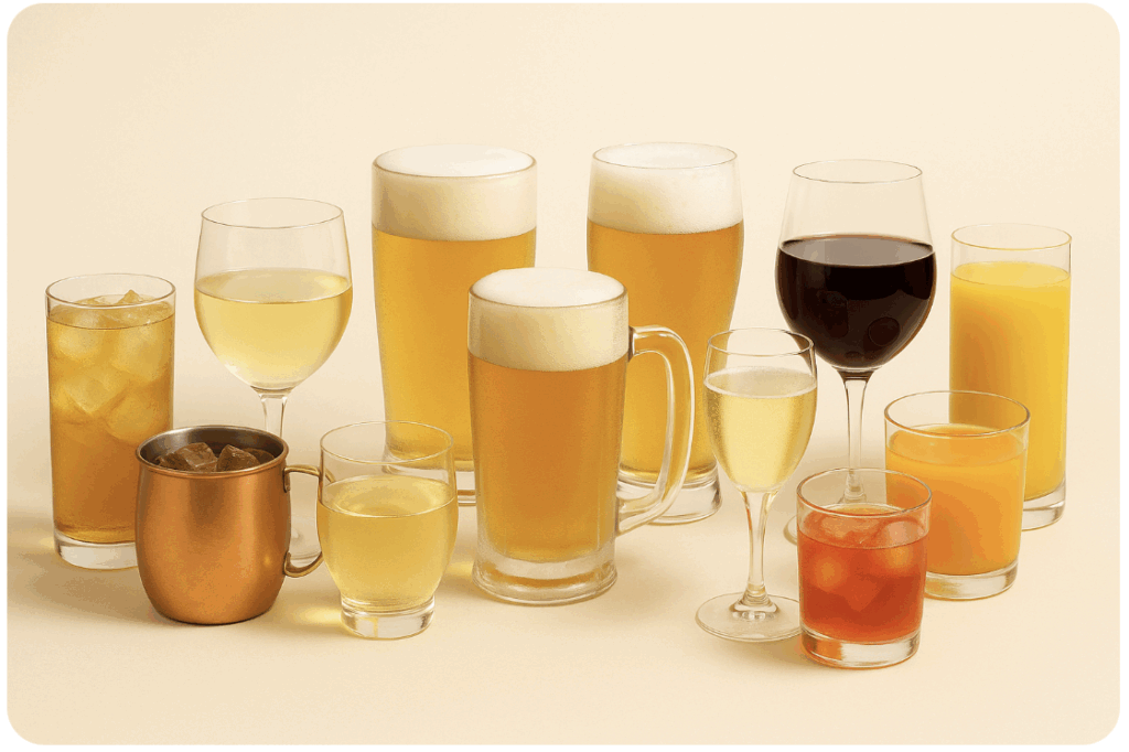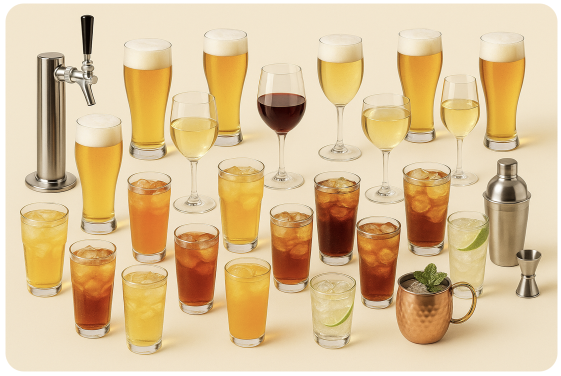 ビール(発泡酒)/カシスソーダ/カシスオレンジ/カシスジンジャー/カシスウーロン/ハイボール/ジンジャーハイボール/モスコミュール/スクリュードライバー/白ワイン/赤ワイン/オペレーター/キティ/キール/ウーロンハイ/レモンサワー/梅酒/オレンジジュース/烏龍茶/ジンジャーエール/シャンディガフ/ジンリッキー/ジントニック/ジンバック/オレンジブロッサム/ラムトニック/ラムバック/ラムコーク/ハイボール/コークハイボール/ウォッカトニック/モスコミュール/スクリュードライバー/オペレーター/キティ/キール/ウーロンハイ/レモンサワー/オレンジサワー/コーラ